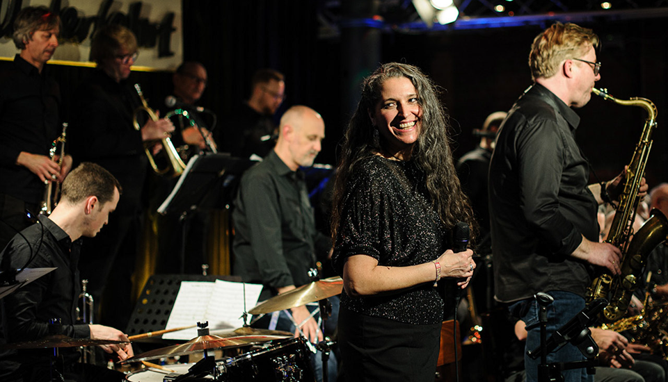 Ein absolutes Highlight des Abends ist auch wieder die charismatische Sängerin Petra Scheeser. Ihre ausdrucksstarke Stimme, ihre große stilistische Bandbreite und ihre starke Bühnenpräsenz schaffen ein gemeinsames Klangbild, das Herbolzheimers musikalisches Erbe mit frischer Energie, modernem Groove und virtuoser Spielfreude auflädt. Das Publikum erlebt so einen Abend voller Dynamik, unbändiger Spielfreude und mitreißendem Bigband-Sound.